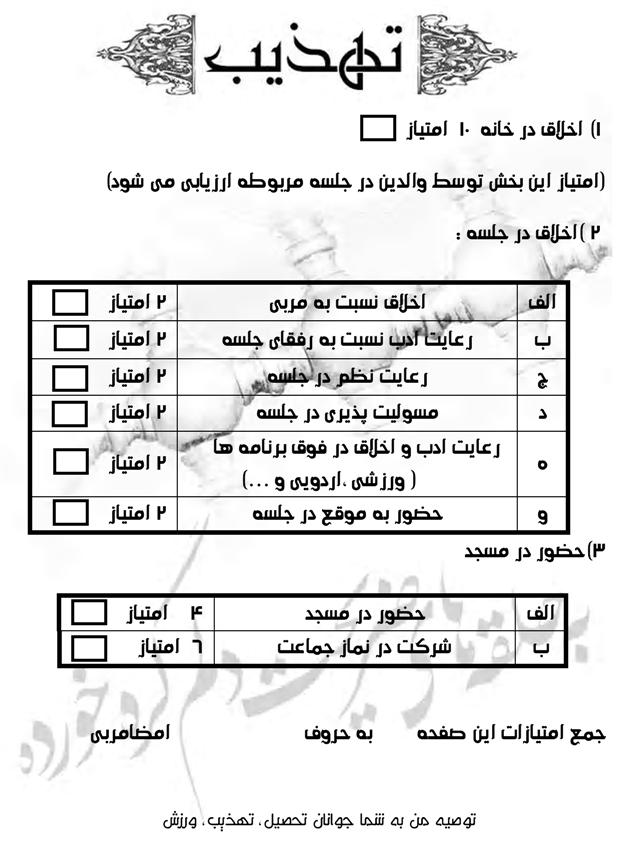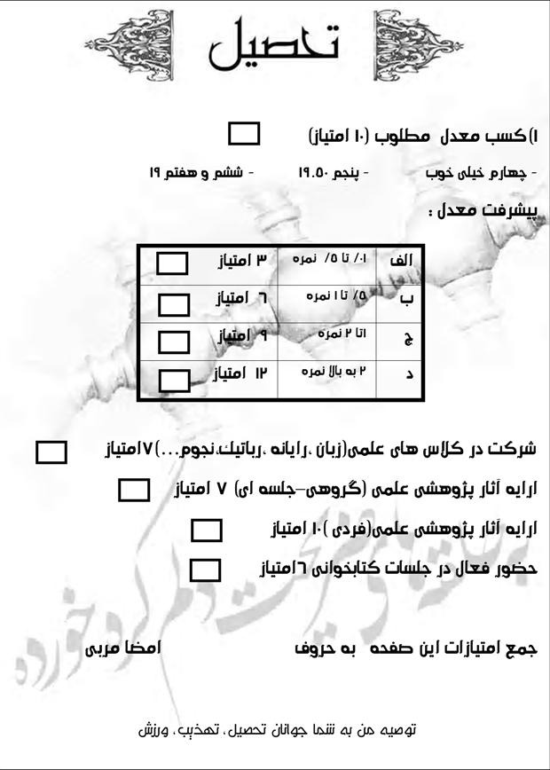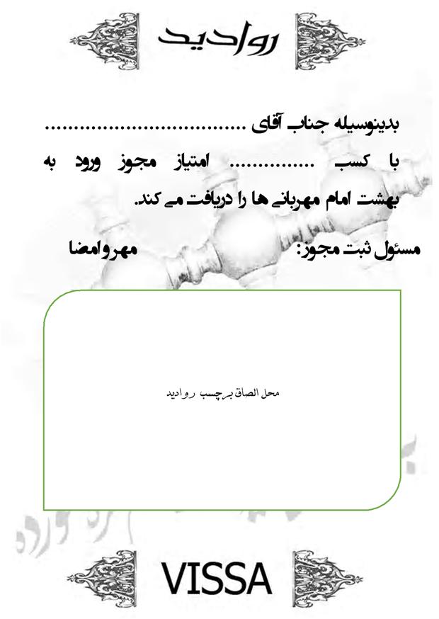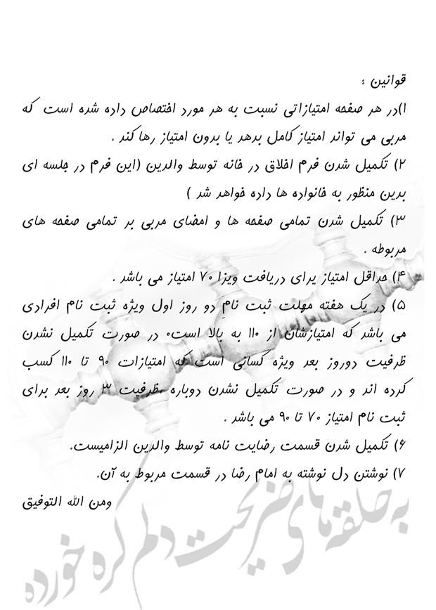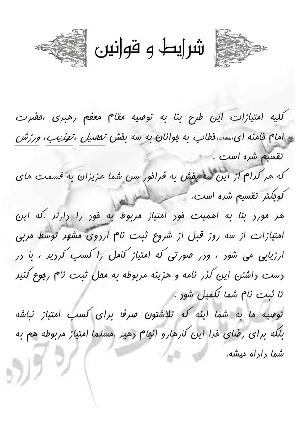 خب چون ظرفیتمون نامحدود بود و نمیدونستم چطور اونایی که لایقش هستندا جدا کنیم و ببریم اومدیم و طرح گذرنامه را دادیم که اساس کارش بر صحبت آقامون خطاب به جوانان:تحصیل،تهذیب،ورزش هست.